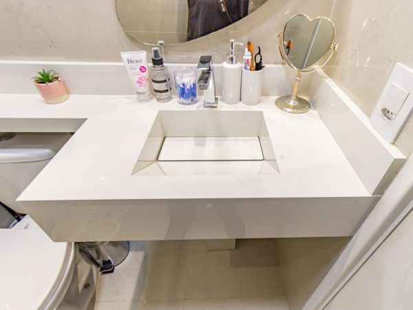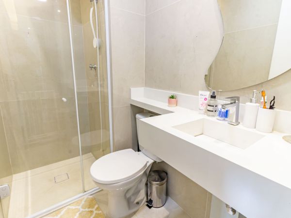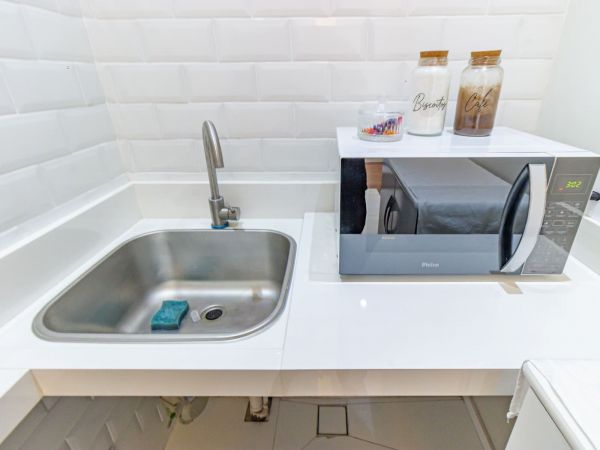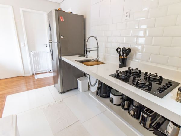 (Itens que não estão incluídos: geladeira, cooktop, espelho do banheiro e micro-ondas.)